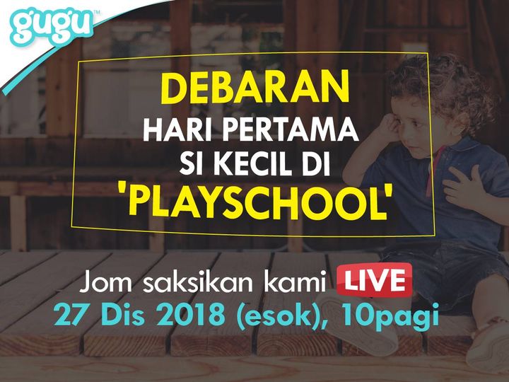 Anak takut ditinggalkan di ‘Playschool’? Anak ke mommy yang terlebih risau ni? 😂😂 JOM dengar tips dari TEACHER LIYANA untuk tenangkan dan pujuk si kecil anda untuk mulakan ‘journey’ baru! Date: 27 December 2017 (Rabu) Time: 10am Eksklusif di page Gugu Malaysia
