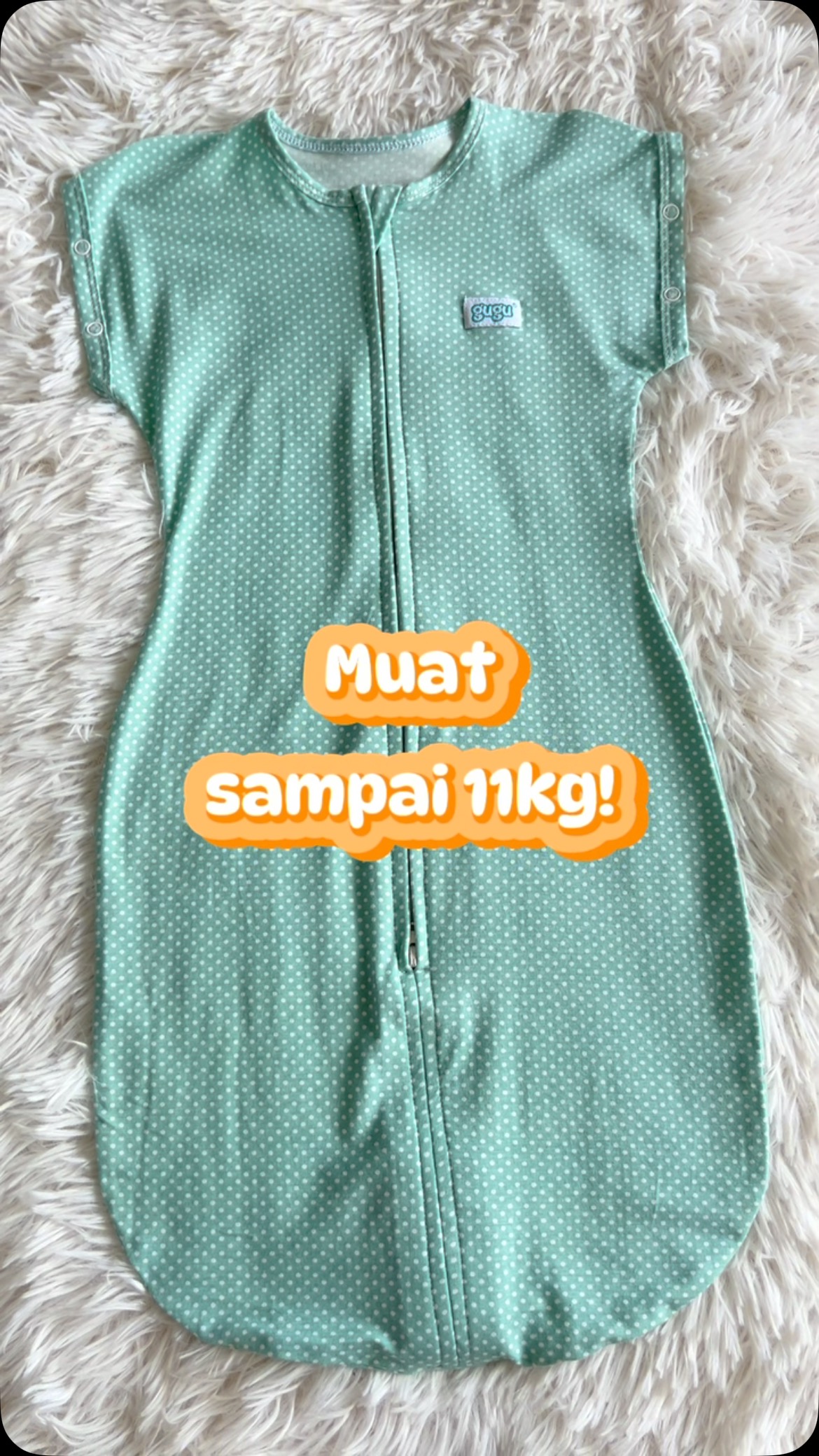 Jumbo Transition Swaddle untuk baby berat sehingga 11kg. Ada button di kiri dan kanan so senang mommy nak keluarkan tangan baby.